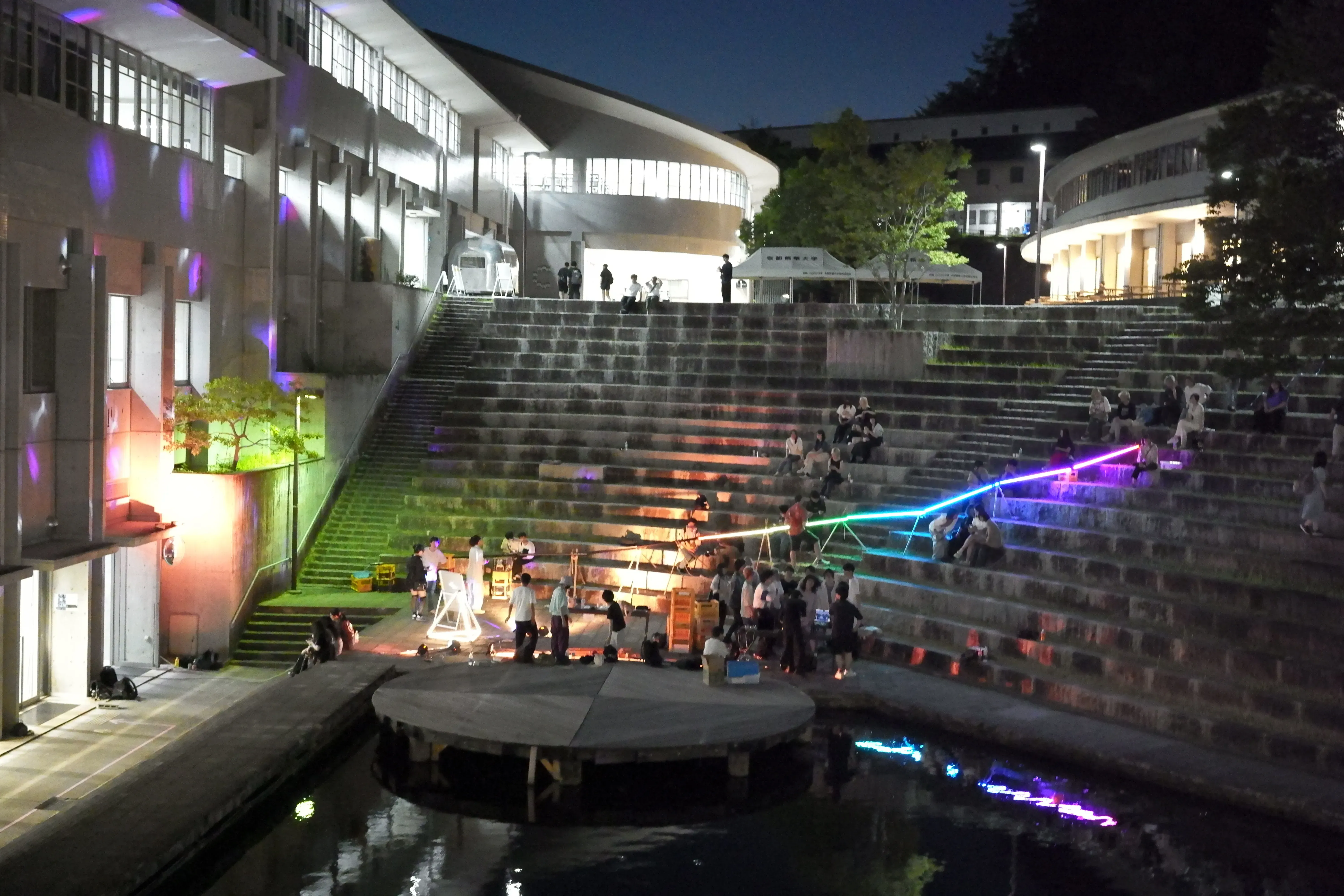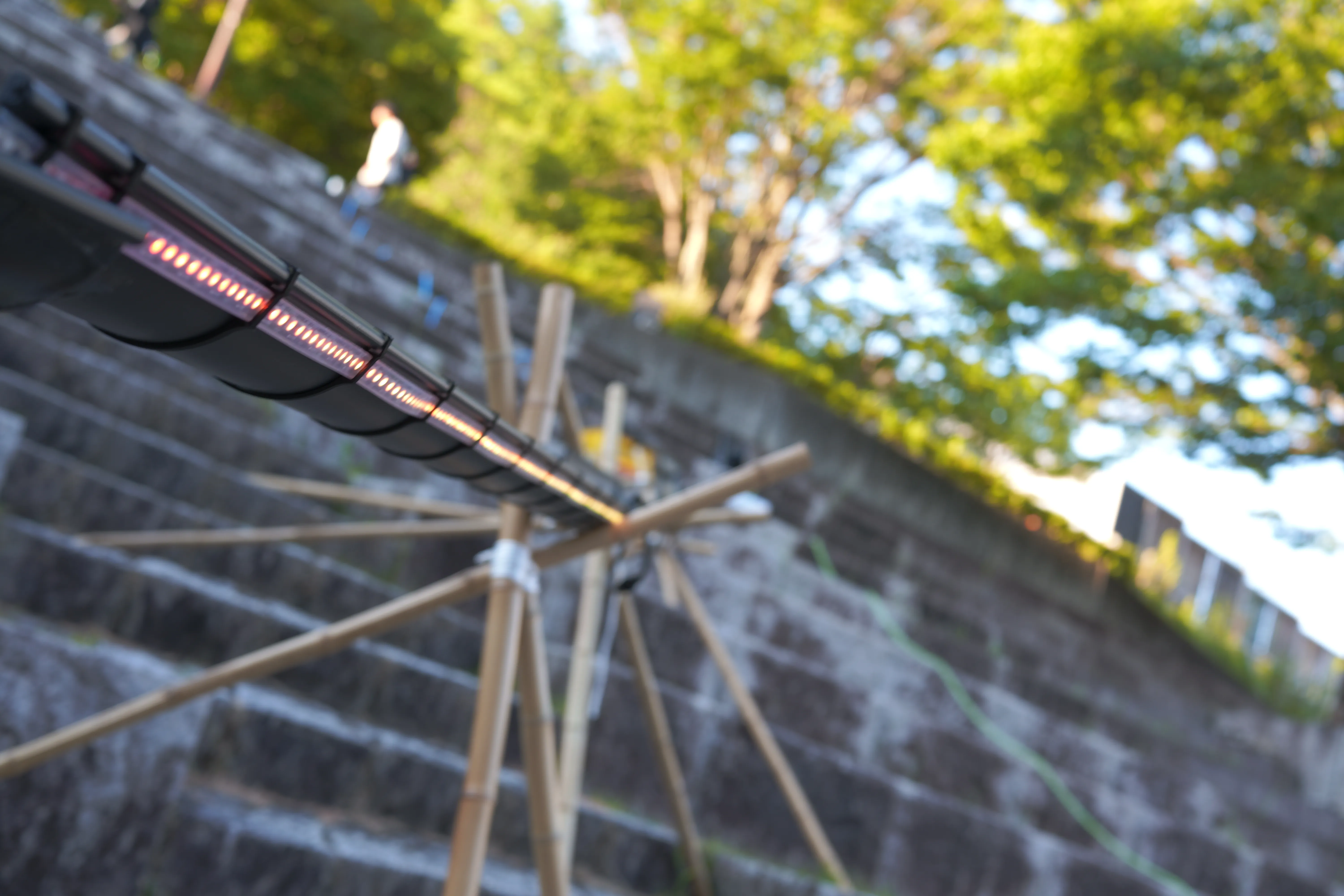 Contents 2025 テクノ流しそうめん 巨大な流しそうめんを光らせるプロジェクト 概要 テクノ流しそうめんは、電子工作部として数年前から行われているイベントである。以前のものから細かな変更や、DJの光の演出等のアップデートを施したものである。